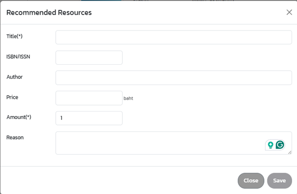 - กรอกข้อมูลหนังสือ พร้อมทั้งระบุเหตุผลการเสนอแนะ แล้วกด Save