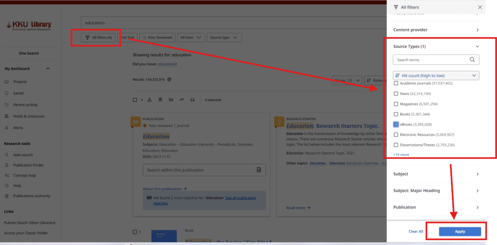 - กรองผลการค้นหา All filters >> Source types >> eBooks >> Apply