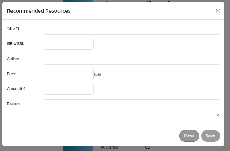 - Enter the book details and provide the reason for your recommendation, then click Save.