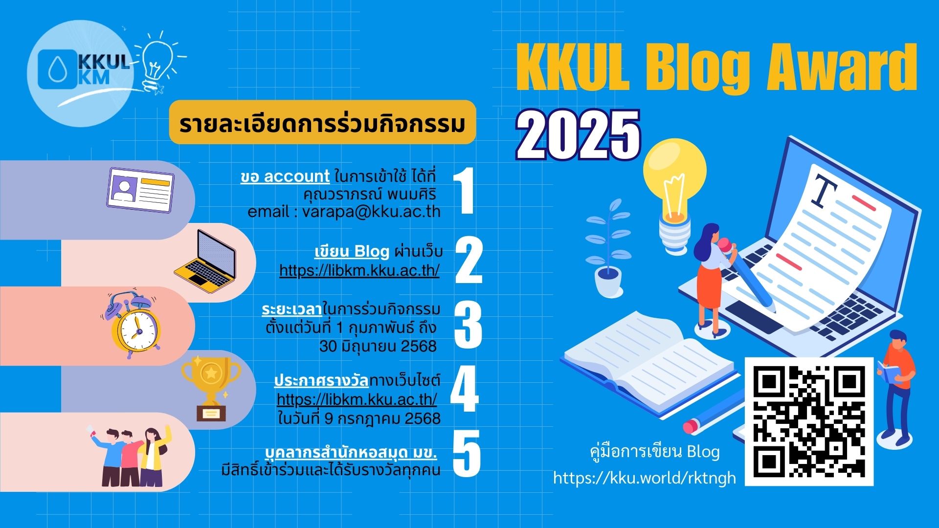 4. ประกาศรางวัลทาง เว็บ https://library.kku.ac.th/kkul-km/ ในวันที่ 9 กรกฎาคม 2568