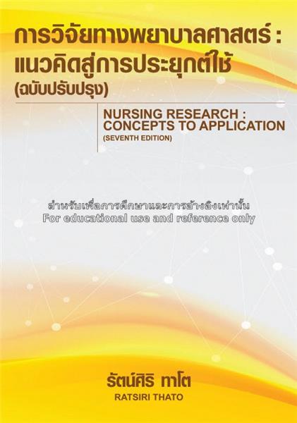 Table of contentsบทนำ -- การทบทวนวรรณกรรม -- ประชากร ตัวอย่าง การคำนวนขนาดตัวอย่างและกลุ่มตัวอย่าง -- ความถูกต้อง ความแม่นยำ ความลำเอียง และตัวแปรกวน -- รูปแบบการศึกษา -- ตัวแปรในงานวิจัย -- การเก็บรวบรวมข้อมูลและแบบเก็บข้อมูล -- แนะนำการใช้โปรแกรม R -- การจัดการข้อมูลด้วยโปรแกรม R -- การวิเคราะห์ข้อมูลเชิงพรรณนาและอนุมานด้วยโปรแกรม R -- การวิเคราะห์การถดถอยเชิงเส้นด้วยโปรแกรม R -- การวิเคราะห์การถดถอยโลจิสติกด้วยโปรแกรม R -- การวิเคราะห์การรอดชีพด้วยโปรแกรม R -- การทดสอบเพื่อการวินิจฉัยโปรแกรม R -- การนำเสนอด้วยภาพ -- การเผยแพร่งานวิจัย