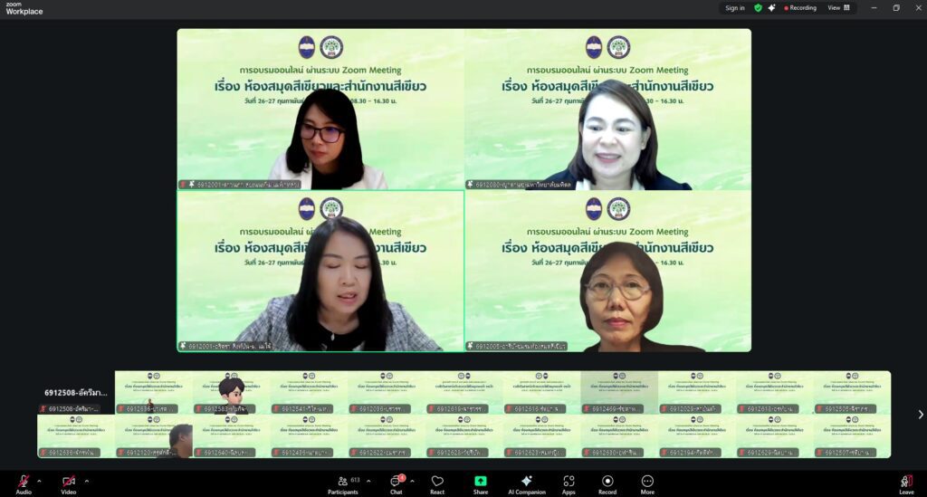 วันที่ 26 - 27 กุมภาพันธ์ พ.ศ. 2569 เวลา 08.30 - 16.30 น. คณะผู้บริหารและบุคลากรสำนักหอสมุด มหาวิทยาลัยขอนแก่น เข้าร่วมการอบรมออนไลน์ ผ่านระบบ Zoom Meeting เรื่องห้องสมุดสีเขียวและสำนักงานสีเขียว มี ...