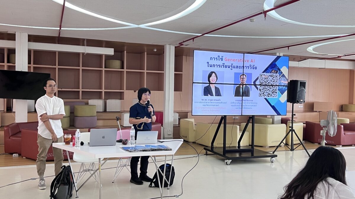 สำนักหอสมุด มหาวิทยาลัยขอนแก่น จัดอบรมเชิงปฏิบัติการ “การใช้ Generative AI ในการเรียนรู้และการวิจัย” เมื่อวันพฤหัสบดีที่ 15 พฤษภาคม 2568 ณ ห้อง 1301 ชั้น 3 อาคาร 1 สำนักหอสมุด มหาวิทยาลัยขอนแก่น โดยมีทีมวิทยากร ได้แก่ รศ.ดร.กานดา สายแก้ว รองผู้อำนวยการฝ่ายเทคโนโลยีดิจิทัลและนวัตกรรม, นายอดุลวิทย์ ชินาภาษ จากบริษัท เนเบอร์ ซอฟต์ จำกัด, นางสาวณัฐอร เลี้ยวประเสริฐ บรรณารักษ์สำนักหอสมุด และ นายวิชยุตม์ ศรีละ นักเทคโนโลยีสารสนเทศ การอบรมนี้จัดขึ้นเพื่อส่งเสริมการเรียนรู้ตลอดชีวิต (Lifelong learning course) ด้าน Generative AI ให้แก่นักศึกษา บุคลากรของมหาวิทยาลัย และบุคคลทั่วไป