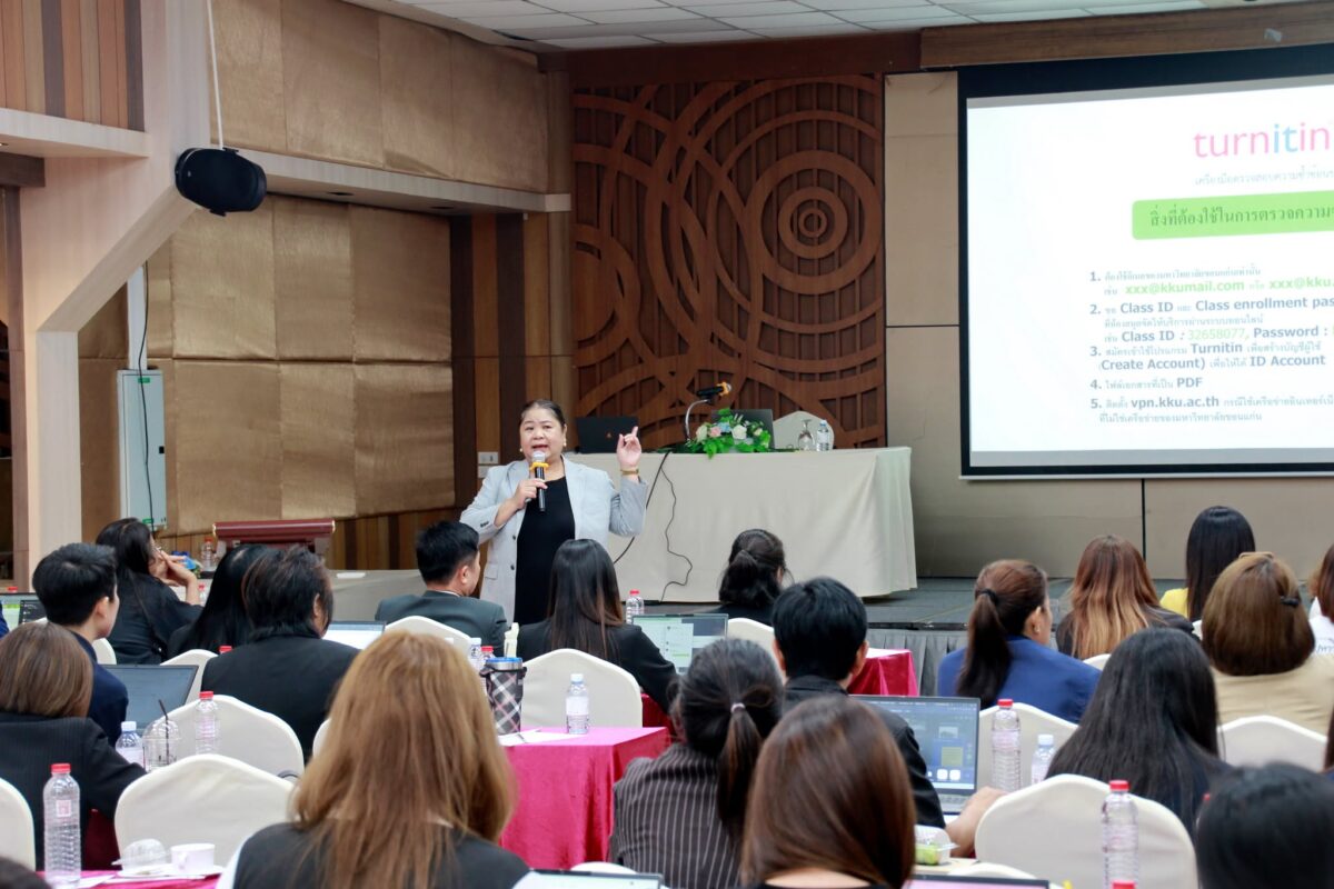 วันที่ 18 สิงหาคม 2568 กองทรัพยากรบุคคล มหาวิทยาลัยขอนแก่น ได้จัดโครงการส่งเสริมความก้าวหน้าของบุคลากรสายสนับสนุน ประจำปีงบประมาณ 2568 ขึ้นที่โรงแรมบายาสิตา มหาวิทยาลัยขอนแก่น เพื่อส่งเสริมคววามก้าวหน้าให้กับบุคลากรสายสนับสนุนของมหาวิทยาลัยขอนแก่น จำนวน 150 คน โดยมีนางสาวสิริพร ทิวะสงห์ บรรณารักษ์ชำนาญการพิเศษ เป็นวิทยากรในหัวข้อ “จริยธรรมการอ้างอิงเอกสารในการจัดทำผลงานทางวิชาการสำหรับบุคลากรสายสนับสนุน” มีการถ่ายทอดความรู้เกี่ยวกับความสำคัญในการมีความรอบรู้ด้านสารสนเทศเพื่อการจัดทำผลงานวิชาการ ประเภทของงานวิชาการและความเชื่อมโยงกับการอ้างอิง แหล่งข้อมูลที่นำมาใช้อ้างอิง เครื่องมือในการค้นคว้าข้อมูล การจัดทำเนื้อหาและการอ้างอิง การตรวจสอบการคัดลอกผลงานด้วยโปรแกรม Turnitin และการใช้ Generative AI เป็นผู้ช่วยในการจัดทำผลงานวิชาการอย่างมีจริยธรรม พร้อมทั้งแนะนำบริการ Research Support, Clinic AI,บริการอบรมTraining Course ที่อบรมเป็นประจำทุกเดือนเกี่ยวกับโปรแกรมจัดการบรรณานุกรม Zotero, การใช้โปรแกรม Turnitin, การสืบค้นข้อมูล และการใช้ AI ในงานวิชาการ ที่บุคคลากรสายสนับสนุนสามารถใช้บริการได้โดยไม่เสียค่าใช้จ่าย