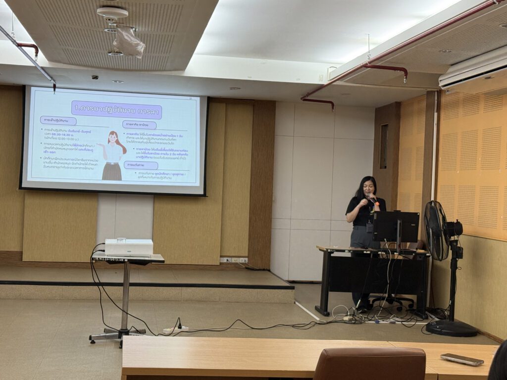 ในช่วงถัดมา เป็นการนำเสนอบทบาทและภารกิจของแต่ละหน่วยงาน โดยหัวหน้างานแต่ละฝ่ายร่วมบรรยาย ประกอบด้วย นางกันยกร นามบุตรดี หัวหน้างานบริหารและอำนวยการ นายปิติพงศ์ พิมพา หัวหน้างานแผนยุทธศาสตร์และเทคโนโลยีสารสนเทศ นางสาวประภาพร มณฑาทิพย์ หัวหน้างานจัดการทรัพยากรและสารสนเทศ และ นางเยาวพร ศานติวิวัฒน์ หัวหน้างานบริการปิดท้ายด้วยกิจกรรมสร้างความสัมพันธ์ระหว่างนักศึกษาและพี่เลี้ยง นำโดย นางสาวประภาพร มณฑาทิพย์ เพื่อสร้างบรรยากาศการทำงานที่อบอุ่นและเอื้อต่อการเรียนรู้