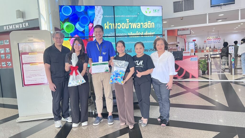The Khon Kaen University Library has extended its gratitude to community networks and volunteers for their contributions to a recent bottle cap donation drive. The initiative was held in observance of Thai Environment Day and as part of the “Do Good for Dad This Month” project.