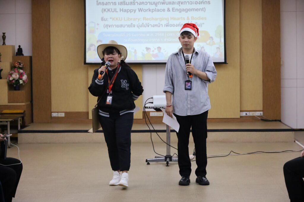 เมื่อวันพฤหัสบดีที่ 25 ธันวาคม 2568 ณ ห้องประชุมดอกคูณ อาคาร 1 สำนักหอสมุด มหาวิทยาลัยขอนแก่น ได้จัดกิจกรรมโครงการ “KKU Library: Recharging Hearts & Bodies” ตลอดทั้งวันตั้งแต่เวลา 08.30-16.30 น. โดยมีบุคลากรของสำนักหอสมุดให้ความสนใจและเข้าร่วมอย่างคับคั่ง