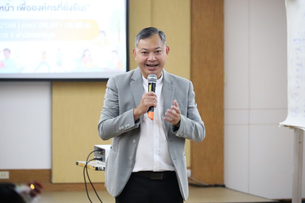 - ช่วงเช้า: การอบรมเชิงปฏิบัติการหัวข้อ “Mind Resilience: ใจแกร่ง ยิ้มรับการเปลี่ยนแปลง” ซึ่งมุ่งเน้นการสร้างความเข้มแข็งทางจิตใจ การปรับตัวและรับมือกับความท้าทายในการทำงานอย่างสร้างสรรค์ รวมถึงการเรียนรู้เทคนิคการจัดการความเครียดเพื่อสร้างสมดุลในชีวิต วิทยากรโดย ผศ.ขวัญสุดา บุญทศ คณะพยาบาลศาสตร์ มหาวิทยาลัยขอนแก่น