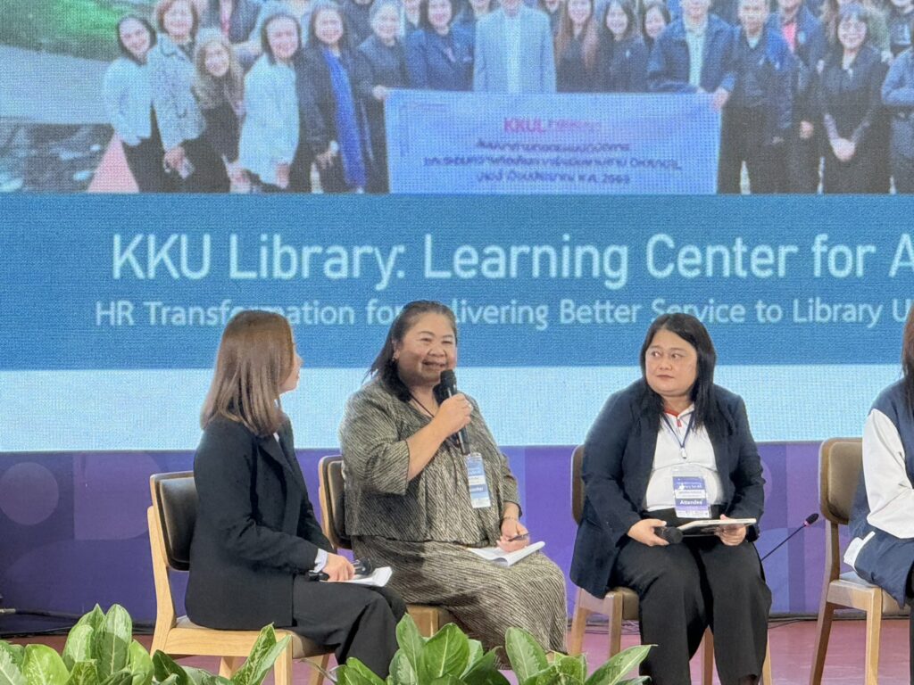 In addition to the presentations, KKU Library staff also contributed to a panel discussion on “Innovative Lifelong Learning Space,” with one librarian serving as a guest speaker and another as a moderator. The awards highlight the library’s significant contributions to advancing the field of library science in the country.