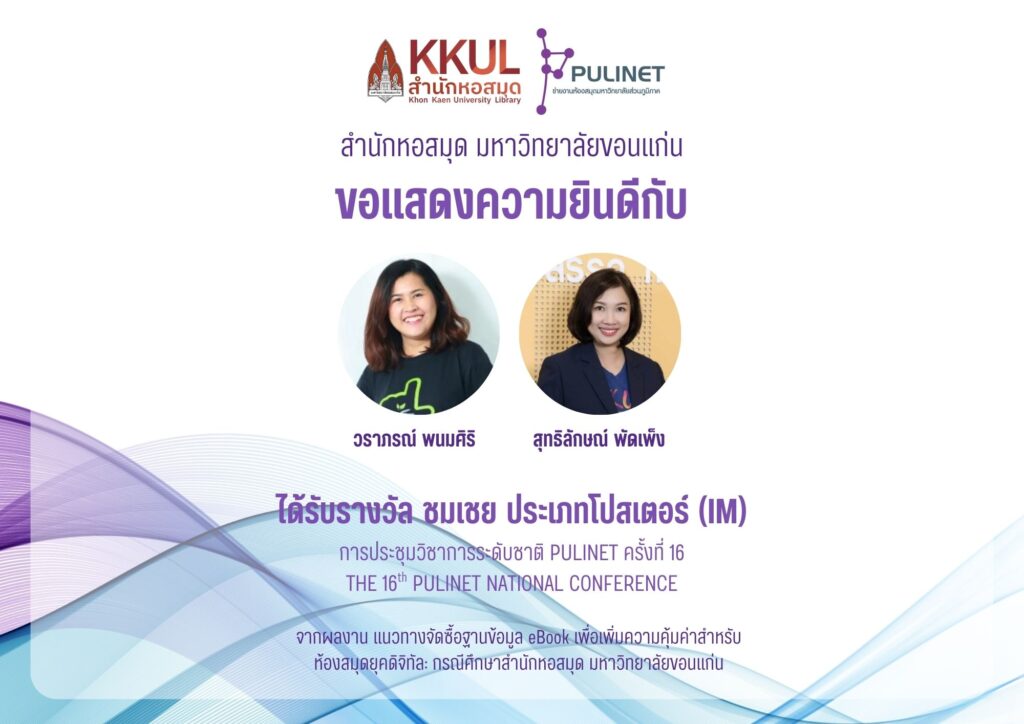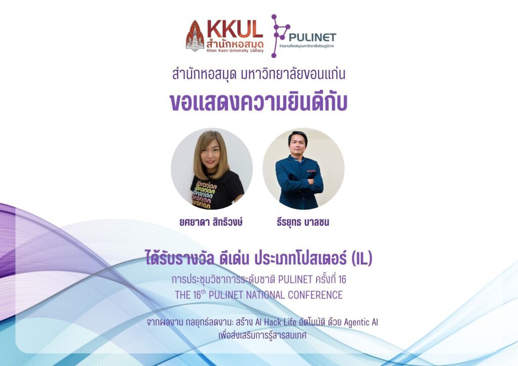 The Khon Kaen University Library has received four awards for its innovative projects at the 16th PULINET National Conference, which took place online from January 28-30, 2026. The event was organized by the University of Phayao’s Institute of Learning Innovation and the Provincial University Library Network (PULINET).