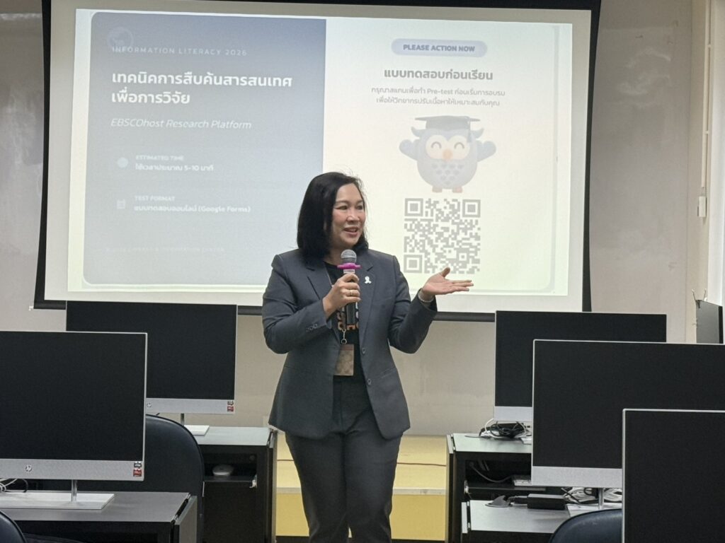 วันอังคารที่ 3 กุมภาพันธ์ 2569 เวลา 09.00 – 16.00 น. สำนักหอสมุด มหาวิทยาลัยขอนแก่น ร่วมกับกระทรวงการอุดมศึกษา วิทยาศาสตร์ วิจัยและนวัตกรรม และบริษัท EBSCO จัดอบรม ใช้ฐานข้อมูลอิเล็กทรอนิกส์เพื่อการสืบค้น ประจำปี 2569 ณ ห้องปฏิบัติการคอมพิวเตอร์ 5 ชั้น 4 อาคารศูนย์สารสนเทศ มหาวิทยาลัยขอนแก่น มีนางสาวสุทธิลักษณ์ พัดเพ็ง รองผู้อำนวยการฝ่ายบริหารและทรัพยากรบุคคล เป็นประธานกล่าวต้อนรับและกล่าวเปิดการอบรม ซึ่งการอบรมในครั้งนี้ เป็นการฝึกอบรมการใช้งานฐานข้อมูลอิเล็กทรอนิกส์เพื่อการสืบค้นข้อมูล (ออนไลน์) จำนวน 4 ฐานข้อมูล ประจำปีงบประมาณ 2569 โดยสำนักหอสมุด มหาวิทยาลัยขอนแก่น เป็นหน่วยงานรับผิดชอบสถานที่จัดอบรมสำหรับสถาบันในภาคตะวันออกเฉียงเหนือ รอบที่ 1 ประกอบด้วย มหาวิทยาลัยราชภัฎนครราชสีมา มหาวิทยาลัยราชภัฎอุดรธานี มหาวิทยาลัยราชภัฎสุรินทร์ มหาวิทยาลัยราชภัฎอุบลราชธานี มหาวิทยาลัยราชภัฎมหาสารคาม มหาวิทยาลัยราชภัฎเลย มหาวิทยาลัยราชภัฎชัยภูมิ มหาวิทยาลัยราชภัฎบุรีรัมย์ มหาวิทยาลัยราชภัฎศรีสะเกษ มหาวิทยาลัยราชภัฎสกลนคร มหาวิทยาลัยราชภัฎร้อยเอ็ด มหาวิทยาลัยเทโนโลยีราชมงคลอีสาน