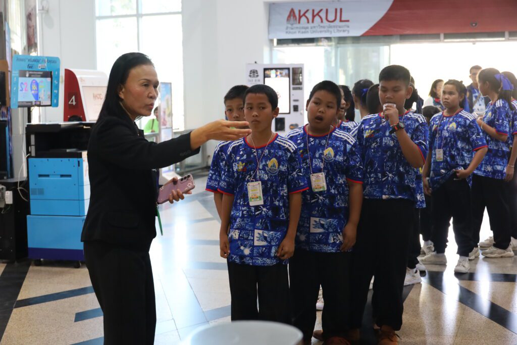 วันที่ 12 กุมภาพันธ์ 2569 สำนักหอสมุด มหาวิทยาลัยขอนแก่น ให้การต้อนรับคณะครูและนักเรียนโรงเรียนบ้านโป่งประชาพัฒน์ จังหวัดร้อยเอ็ด จำนวน 69 คน ในโครงการทัศนศึกษาแหล่งเรียนรู้นอกสถานที่ เพื่อเปิดโลกทัศน์และเรียนรู้แนวทางการให้บริการสารสนเทศ โดยมี นางยุภาพร ทองน้อย ผู้ช่วยผู้อำนวยการฝ่ายขับเคลื่อนยุทธศาสตร์และการจัดการทรัพยากรสารสนเทศ ให้การต้อนรับอย่างเป็นกันเอง พร้อมด้วย นางมุกดา ดวงพิมพ์ และ นางยุพา ดวงพิมพ์ บรรณารักษ์ชำนาญการพิเศษ ร่วมต้อนรับและทำหน้าที่วิทยากรนำชมพื้นที่บริการต่าง ๆ ภายในสำนักหอสมุด เช่น Learning Space, Maker Space และบริการเทคโนโลยีสารสนเทศหลากหลายรูปแบบ
