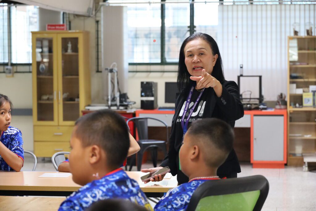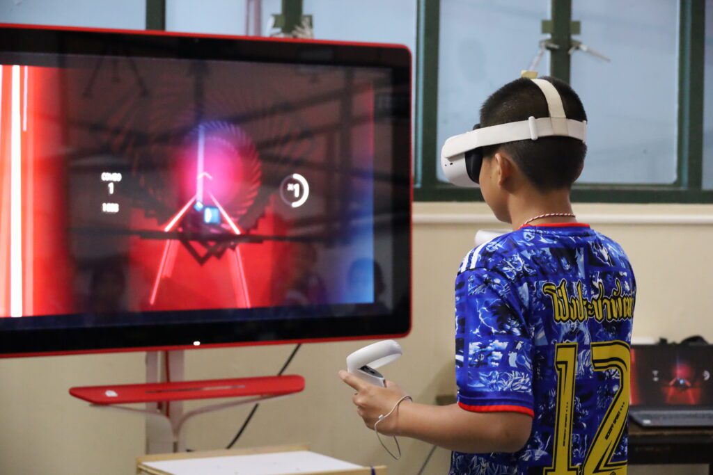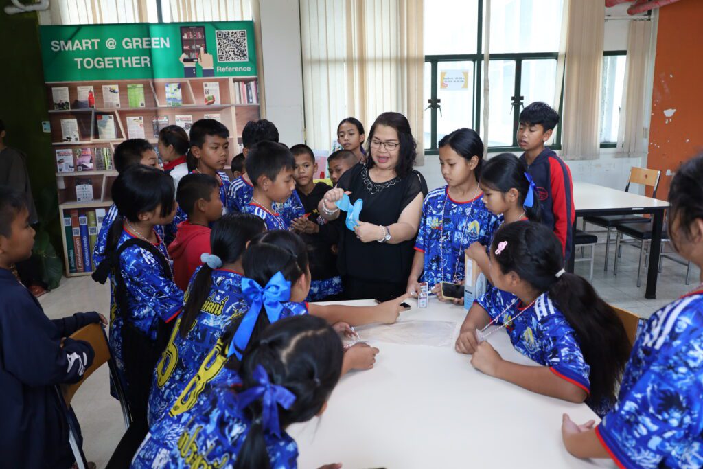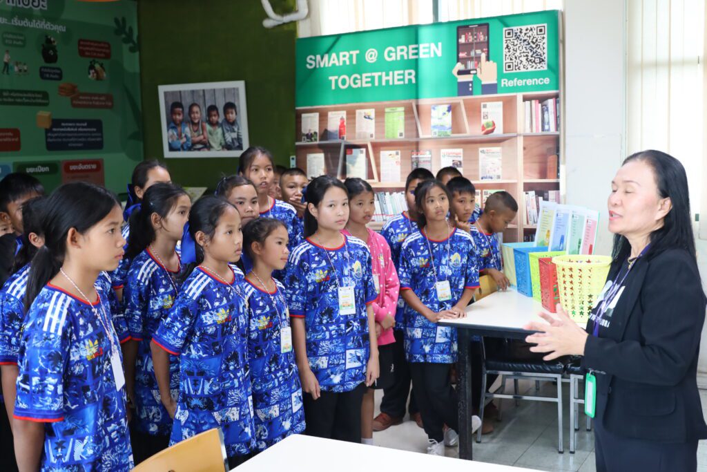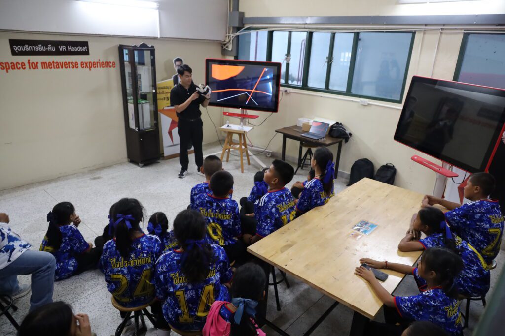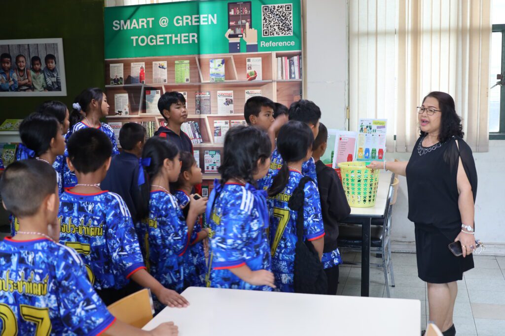 คณะศึกษาดูงานยังได้รับโอกาสพิเศษในการเข้าร่วม “Metaverse Experience” นวัตกรรมล่าสุดของสำนักหอสมุด ซึ่งนายวิชยุตม์ ศรีละ นักเทคโนโลยีสารสนเทศ เป็นผู้บรรยายและสาธิตเทคโนโลยีโลกเสมือนจริง (Virtual Reality) สร้างความตื่นเต้นและเปิดมุมมองการเรียนรู้ในรูปแบบใหม่ นอกจากนี้ ผู้เข้าชมยังได้เยี่ยมชมห้องปฏิบัติการและสภาพแวดล้อมภายในสำนักหอสมุดที่เอื้อต่อการเรียนรู้ พร้อมร่วมกิจกรรมให้ความรู้ด้านสิ่งแวดล้อมที่จุดบริการ Green Corner และรับมอบหนังสือด้านสิ่งแวดล้อมจากสำนักหอสมุดสำหรับโรงเรียนบ้านโป่งประชาพัฒน์
