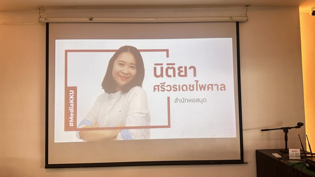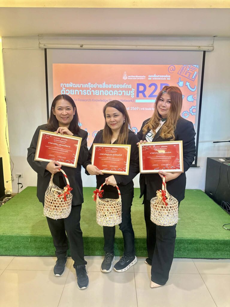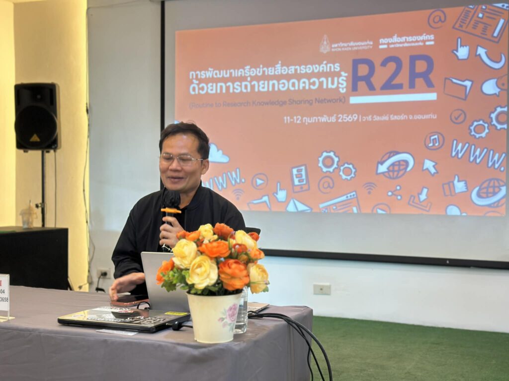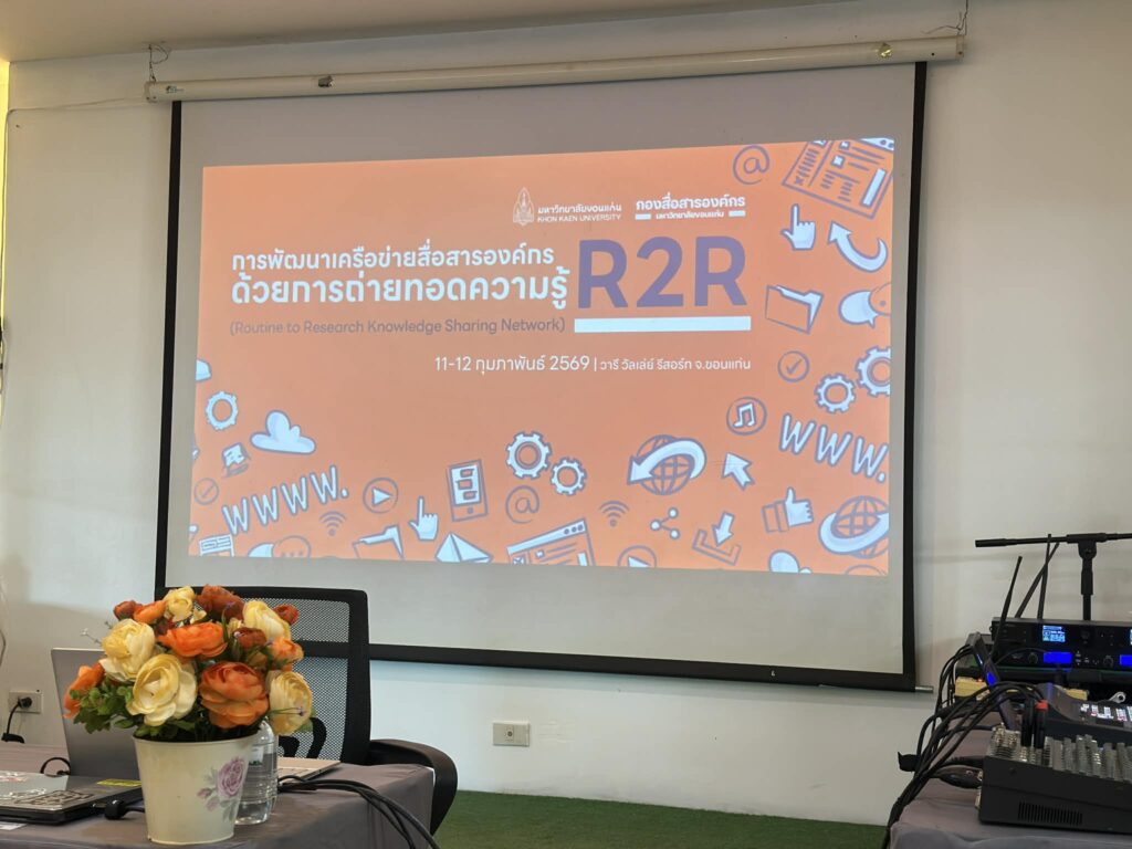 วันที่ 11 -12 กุมภาพันธ์ 2569 กองสื่อสารองค์กร มหาวิทยาลัยขอนแก่น จัดกิจกรรมพัฒนาเครือข่ายสื่อสารองค์กรด้วยการถ่ายทอดความรู้ R2R (Routine to Research Knowledge Sharing Network) ภายใต้โครงการพัฒนาศักยภาพการผลิตสื่อออนไลน์ มหาวิทยาลัยขอนแก่น ประจำปีงบประมาณ 2569 ณ วารี วัลเล่ย์ รีสอร์ท ตำบลบ้านดง อำเภออุบลรัตน์ จังหวัดขอนแก่น นั้น กองสื่อสารองค์กรตระหนักถึงความโดดเด่นของสำนักหอสมุด มหาวิทยาลัยขอนแก่น ในการดำเนินงานด้านประชาสัมพันธ์และการสื่อสารองค์กร ที่มีการสร้างแบรนด์และภาพลักษณ์ที่ชัดเจนเป็นที่ยอมรับและเป็นแบบอย่างที่ดีให้กับหน่วยงานอื่นๆ ภายในมหาวิทยาลัย จึงได้รับเชิญ นางสาวนิติยา ศรีวรเดชไพศาล ผู้ช่วยผู้อำนวยการฝ่ายอำนวยการ องค์กร และชุมชนสัมพันธ์ เป็นวิทยากรแลกเปลี่ยนในเวทีเสวนา “Professional Communication Network: เรียนรู้จากของจริง สู่ Best Practices”
