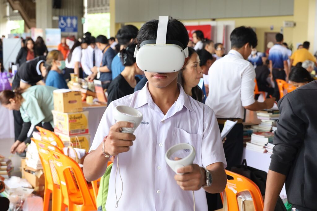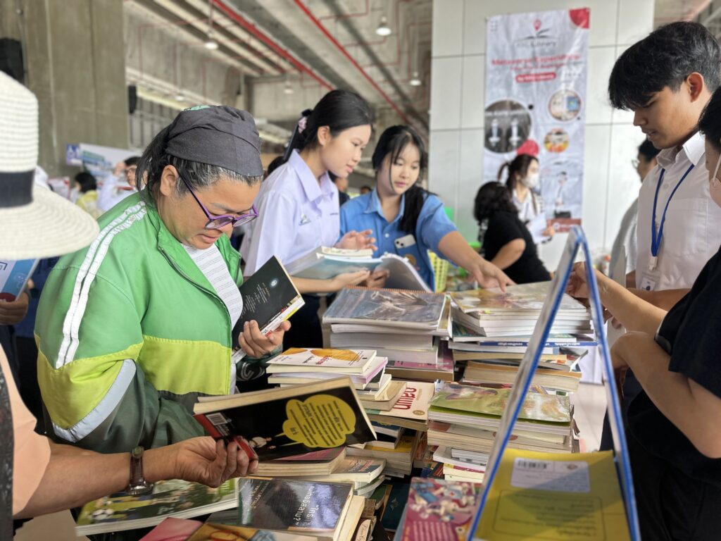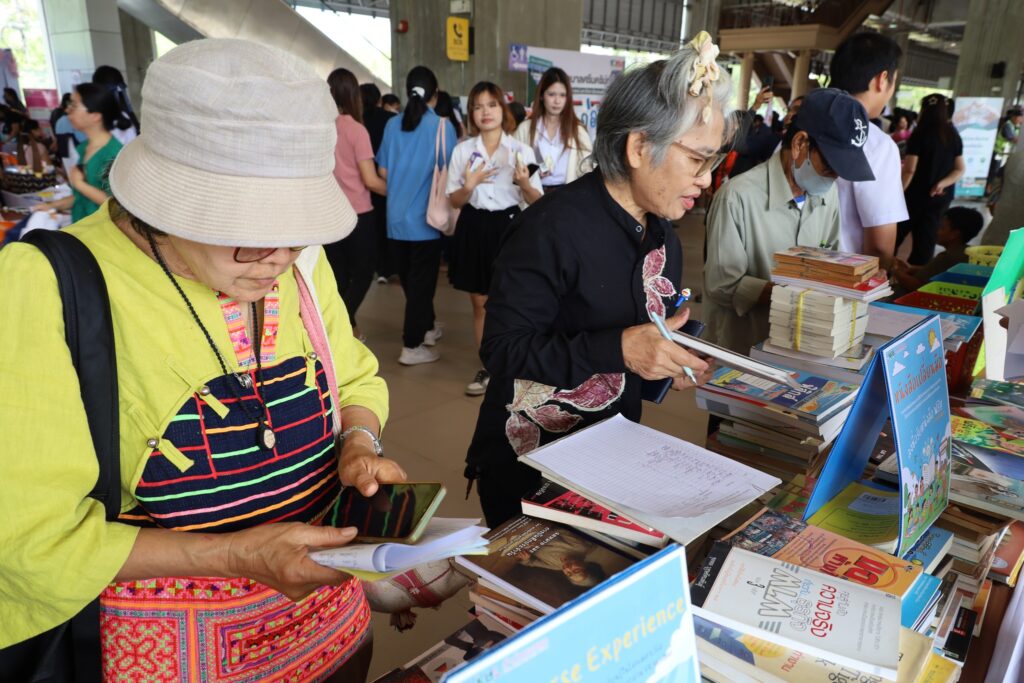 สำนักหอสมุดในฐานะ Learning center for all ได้ร่วมเป็นเครือข่ายมหาวิทยาลัยขอนแก่นบริการชุมชนออกบูธให้บริการด้านการให้ความรู้และการศึกษาแก่ประชาชนทั่วไป โดยได้นำกิจกรรมที่สนับสนุนการเรียนรู้ที่หลากหลายมาให้บริการแก่ผู้สนใจทุกกลุ่ม โดยสำนักหอสมุดได้จัดเตรียม 5 กิจกรรมหลัก เพื่อส่งเสริมการเรียนรู้ที่ทันสมัยและการมีส่วนร่วมกับชุมชน โดยเน้นการนำ เทคโนโลยีเสมือนจริง อย่างแว่น VR เมตาเวิร์สมาช่วยเปิดประสบการณ์แปลกใหม่ให้กับผู้ใช้บริการ นอกจากนี้ยังมีโครงการ แบ่งปันหนังสือ เพื่อกระตุ้นนิสัยรักการอ่านควบคู่ไปกับการใช้สื่อสันทนาการที่หลากหลาย เช่น เกมกระดานและการระบายสี นอกจากนี้ยังให้ความสำคัญกับการอนุรักษ์สิ่งแวดล้อม ผ่านกิจกรรมคัดแยกขยะและการรับบริจาควัสดุเหลือใช้เพื่อสร้างจิตสำนึกที่ดี ทั้งหมดนี้ถือเป็นการผสมผสานระหว่าง นวัตกรรมดิจิทัล การสืบสานศิลปวัฒนธรรม และความรับผิดชอบต่อสังคมเข้าด้วยกันอย่างลงตัว การดำเนินงานเหล่านี้มุ่งเน้นให้ห้องสมุดเป็นพื้นที่แห่งการเรียนรู้ที่ยั่งยืนและเข้าถึงได้ง่ายสำหรับทุกคนในยุคปัจจุบัน