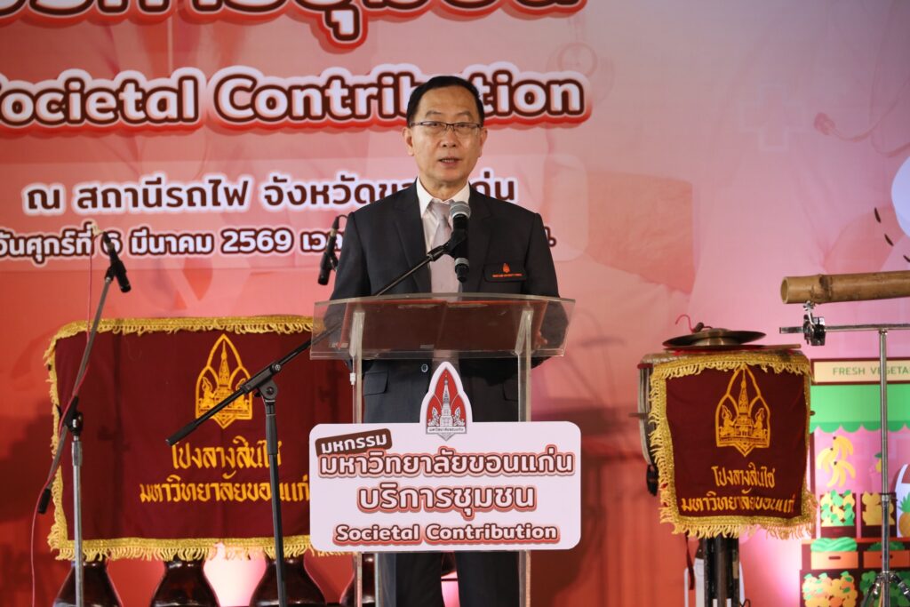 เมื่อวันศุกร์ที่ 6 มีนาคม 2569 เวลา 09.00 – 15.00 น. สำนักหอสมุด มหาวิทยาลัยขอนแก่น นำโดย นางยุภาพร ทองน้อย ผู้ช่วยผู้อำนวยการฝ่ายขับเคลื่อนยุทธศาสตร์และการจัดการทรัพยากรสารสนเทศ นางสาวนิติยา ศรีวรเดชไพศาล ผู้ช่วยผู้อำนวยการฝ่ายอำนวยการ องค์กร และชุมชนสัมพันธ์ พร้อมด้วยตัวแทนบุคลากรของสำนักหอสมุด ได้ร่วมกับหน่วยงานต่างๆ ของมหาวิทยาลัยขอนแก่น ภายใต้โครงการมหาวิทยาลัยขอนแก่นบริการวิชาการเพื่อสร้างประโยชน์ให้สังคม Societal Contribution ประจำปีงบประมาณ 2569 ณ ชั้น 2 สถานีรถไฟขอนแก่น จังหวัดขอนแก่น โดยมี รศ.นพ.ชาญชัย พานทองวิริยะกุล อธิการบดีมหาวิทยาลัยขอนแก่น เป็นประธานในพิธีเปิด