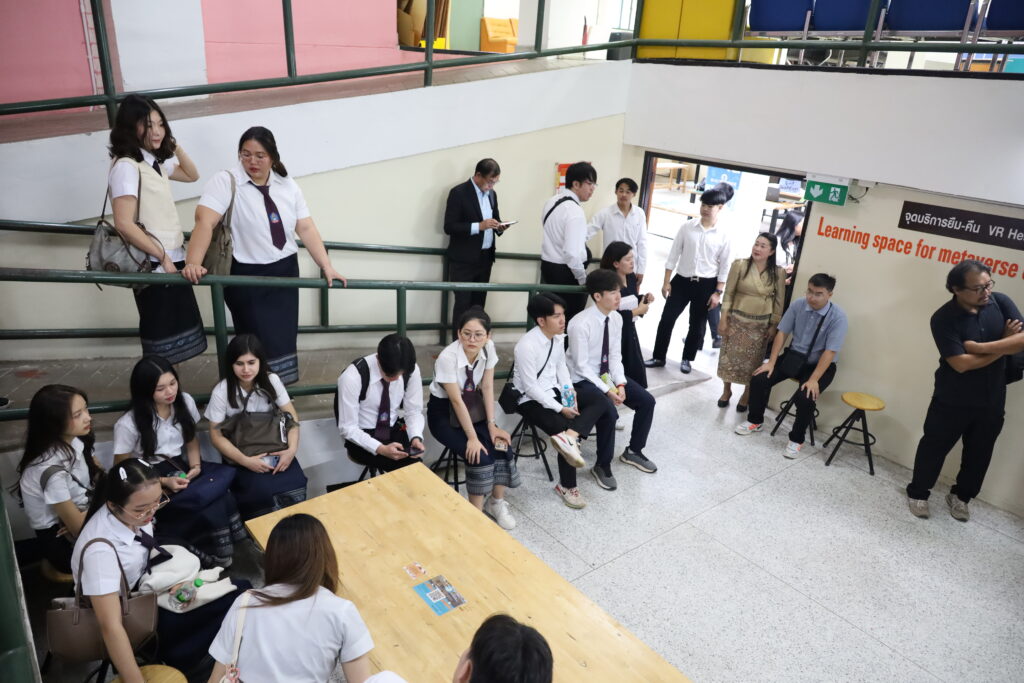 ไฮไลท์สำคัญของการศึกษาดูงานในครั้งนี้ คือการเปิดประสบการณ์นวัตกรรมบริการล่าสุดของสำนักหอสมุด “Metaverse Experience” โดยมี นายปิติพงศ์ พิมพา หัวหน้างานแผนยุทธศาสตร์และเทคโนโลยีสารสนเทศ เป็นวิทยากรสาธิตการใช้งานเทคโนโลยีโลกเสมือนจริง (Virtual Reality) ซึ่งเป็นการเปิดมิติใหม่ของการเรียนรู้ที่น่าตื่นเต้นและสร้างความประทับใจให้แก่คณะผู้มาเยือนเป็นอย่างยิ่ง นอกจากนี้ นายอุทิศ นามสีฐาน ยังได้แนะนำพื้นที่สร้างสรรค์นวัตกรรม “KKU Maker Space” ซึ่งเป็นพื้นที่ส่งเสริมการเรียนรู้และพัฒนาทักษะด้านเทคโนโลยีและสิ่งประดิษฐ์