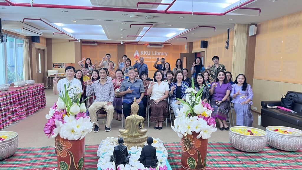 มื่อวันที่ 8 เมษายน 2569 เวลา 13.00 น. สำนักหอสมุด มหาวิทยาลัยขอนแก่น จัดกิจกรรมร่วมสืบสานสงกรานต์ประเพณีปีใหม่ไทย ๒๕๖๙ โดยมี รศ.นพ.สุพัชญ์ สีนะวัฒน์ ผู้อำนวยการสำนักหอสมุดเป็นประธานในพิธี พร้อมคณะผู้บริหาร บุคลากร โดยในงานประกอบด้วยกิจกรรมสรงน้ำพระและรดน้ำดำหัวบุคลากรอาวุโสและผู้บริหาร ณ ห้องประชุมดอกคูน ชั้น 1 สำนักหอสมุด เพื่อความเป็นสิริมงคลและสืบสานขนบธรรมเนียมประเพณีอันดีงามของไทย เนื่องในเทศกาลสงกรานต์ ประจำปี 2569 บรรยากาศในงานนี้เต็มไปด้วยรอยยิ้ม ความอบอุ่น สนุกสนาน และเป็นกันเอง