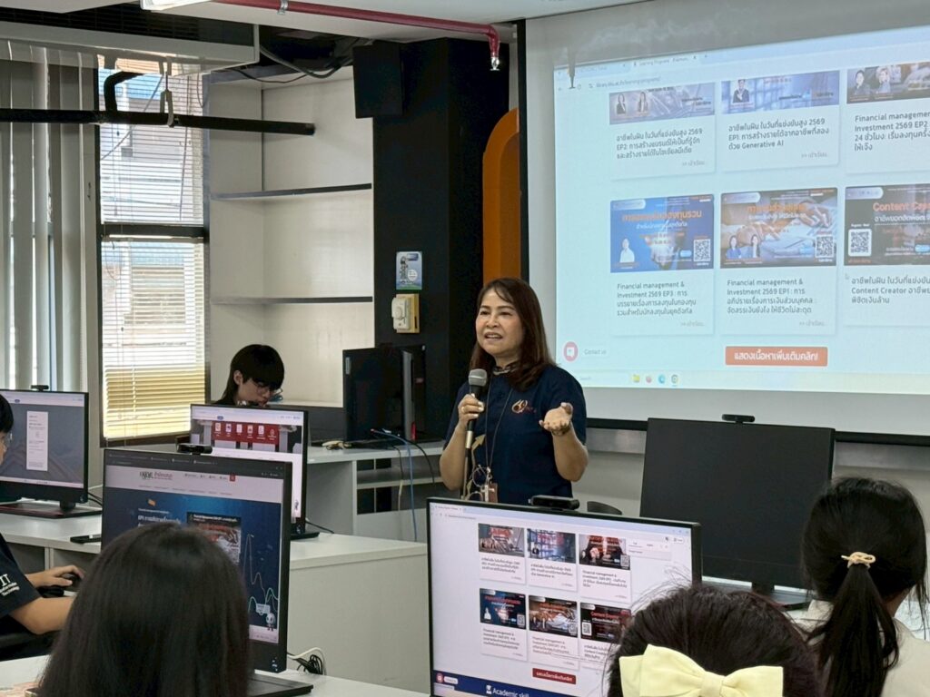 นอกจากทักษะด้านห้องสมุดแล้ว สำนักหอสมุดยังให้ความสำคัญกับการพัฒนาคุณภาพชีวิต โดยในวันที่ 22 เมษายน 2569 มีการอบรมหัวข้อ “การจัดการการเงินและการลงทุน และการหารายได้เสริมจากอาชีพที่ 2” เพื่อปูพื้นฐานความมั่นคงทางการเงินให้นักศึกษา และต่อเนื่องด้วยทักษะเทคโนโลยีขั้นสูง วิทยากรโดย คุณยุภาพร ทองน้อย และคุณปิยาพัชร สุวรรณเกษม ในวันที่ 23 เมษายน 2569 อบรมหัวข้อ การพัฒนาแอปพลิเคชันด้วย AppSheet วิทยากรโดย คุณปิติพงศ์ พิมพา และคุณภานุวัตร อุทัยบาล และวันที่ 24 เมษายน 2569 อบรมหัวข้อ การสร้าง Report ด้วย Looker Studio วิทยากรโดย คุณยุวดี เพชระ และคุณเมธยา เสามะลี เพื่อสร้างทักษะการวิเคราะห์และนำเสนอข้อมูลอย่างเป็นระบบ