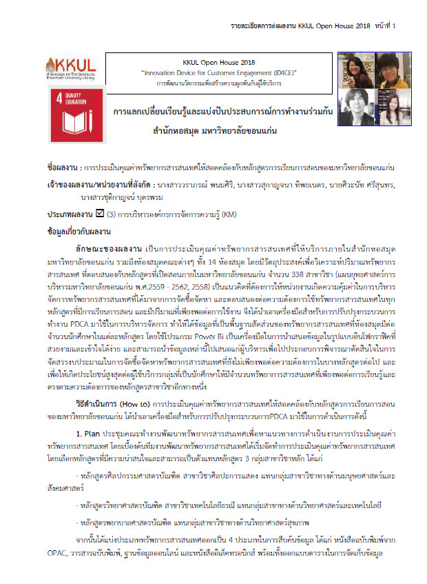 การประเมินคุณค่าทรัพยากรสารสนเทศให้สอดคล้องกับหลักสูตรการเรียนการสอนของมหาวิทยาลัยขอนแก่น 11 April 2025 by นักศึกษาฝึกงาน