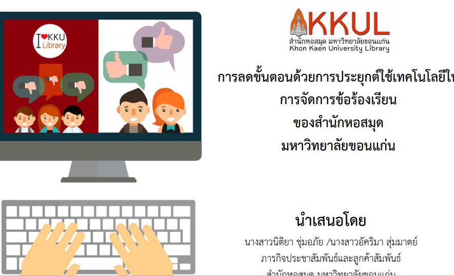การลดขั้นตอนด้วยการประยุกต์ใช้เทคโนโลยีในการจัดการข้อร้องเรียน ของสำนักหอสมุด มหาวิทยาลัยขอนแก่น 17 April 2025 by นักศึกษาฝึกงาน