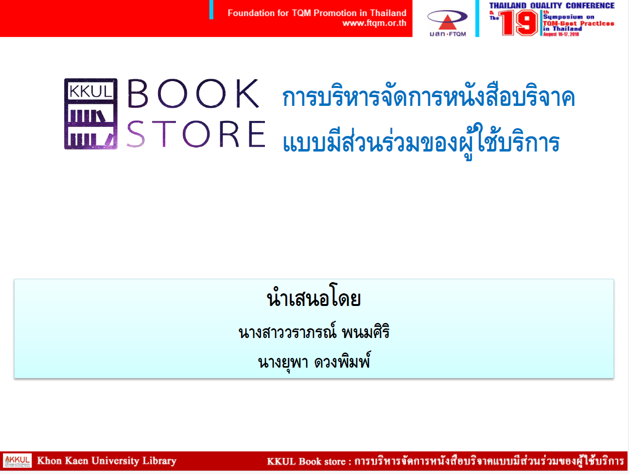 KKUL Book Store การบริหารจัดการหนังสือบริจาคแบบมีส่วนร่วมของผู้ใช้บริการ (Power Point) 17 April 202517 April 2025 by นักศึกษาฝึกงาน