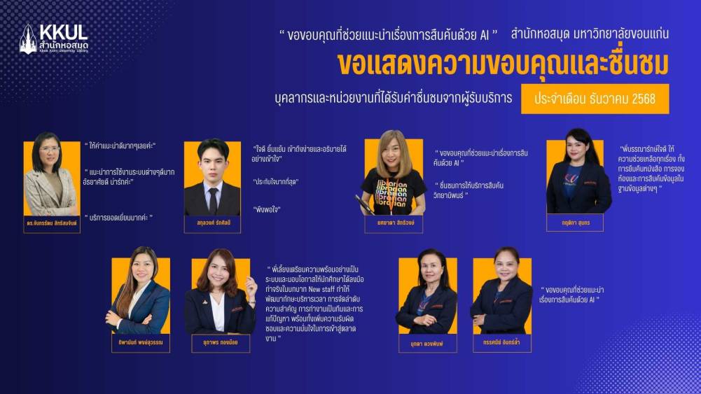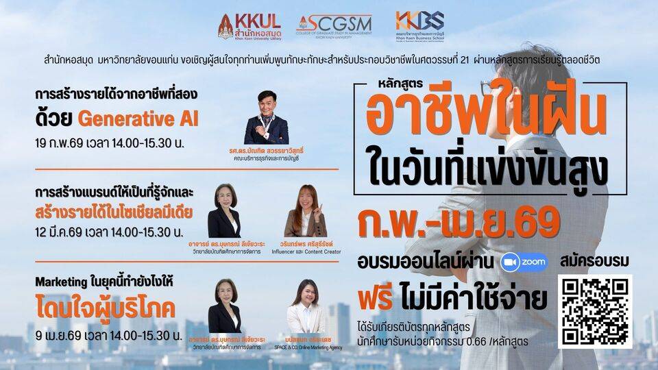 - สำนักหอสมุด ม.ขอนแก่น ชวนอัปสกิลแห่งอนาคต ผ่าน 3 หลักสูตรเรียนรู้ตลอดชีวิต “AI – สร้างแบรนด์ – การตลาด” เรียนฟรี!